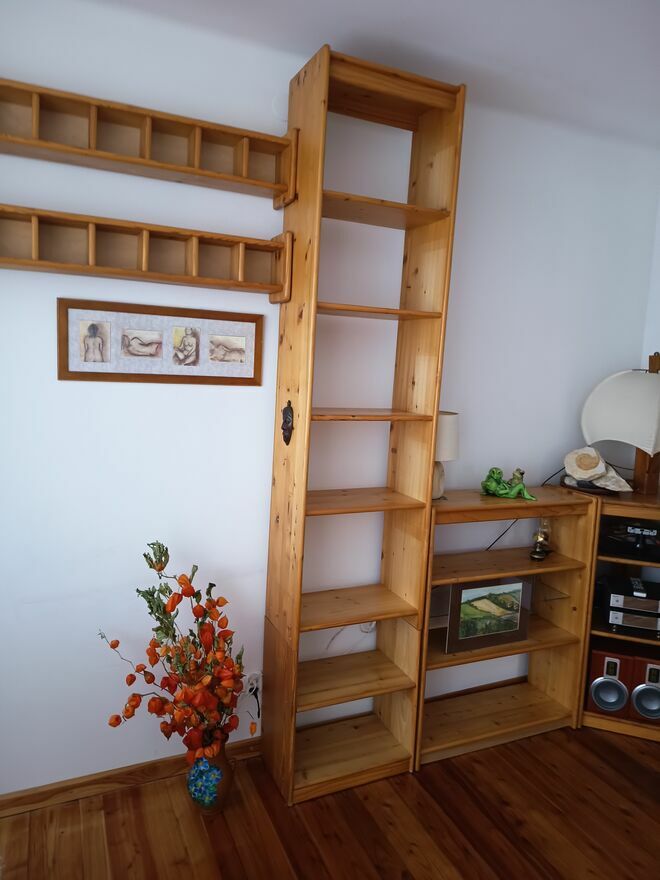 Sprzedam regały drewniane impregnowane robione na zamówienie:sosnowe o wymiarach: szerokość 50, 80, głębokość 30 cm, wysokość 240 cm. Szafki stojące wys. 100 cm., długość: 80 cm. głęb. 30 cm.